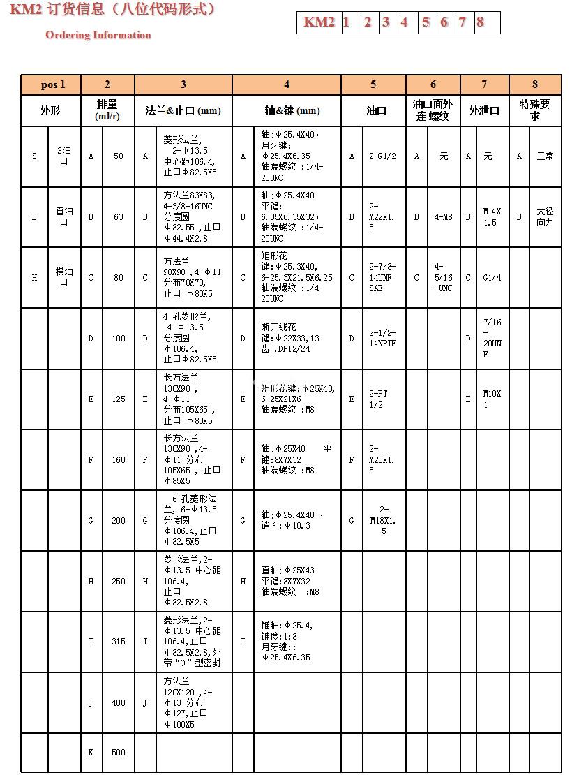 排量 (ml/r) | 50 | 63 | 80 | 100 | 125 | 160 | 200 | 250 | 315 | 400 | 500 | |