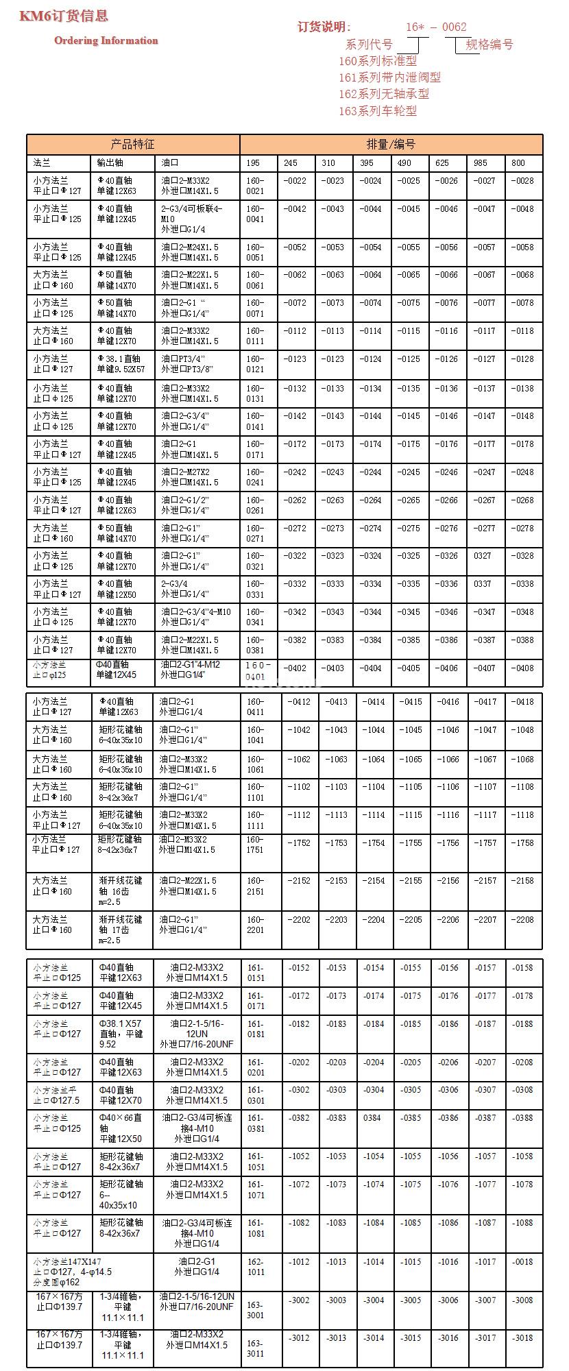 排量 (ml/r) | 195 | 245 | 310 | 395 | 490 | 625 | 800 | 985 | |