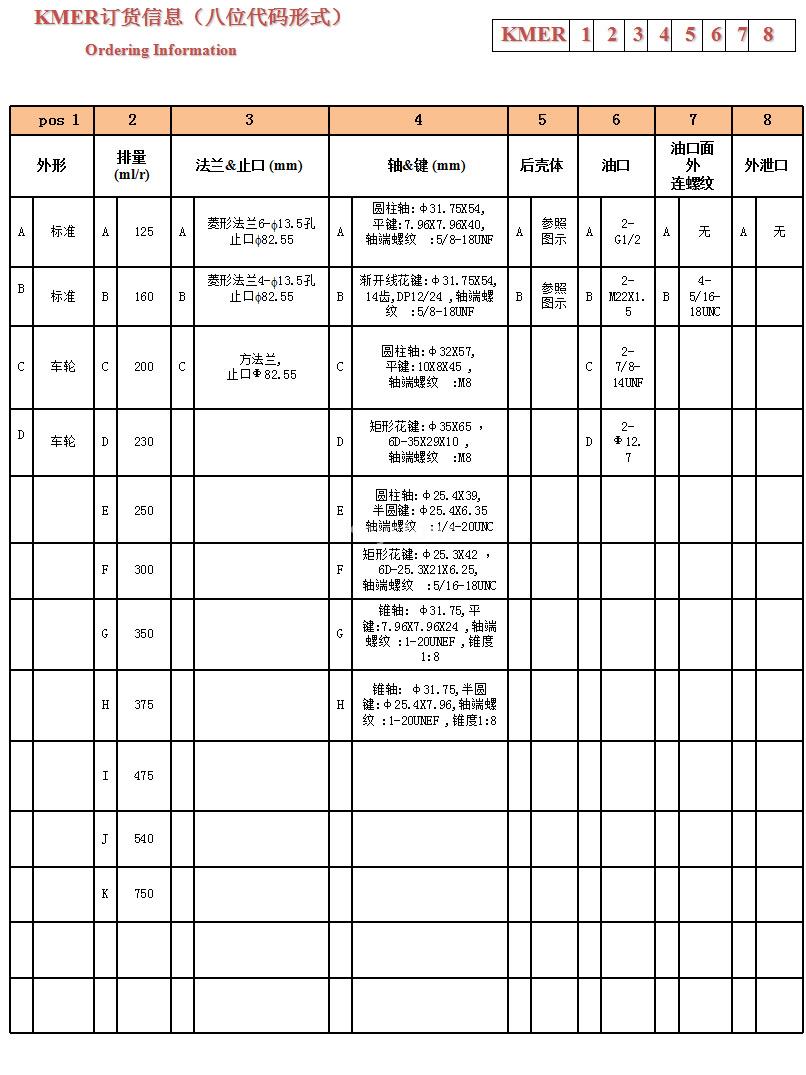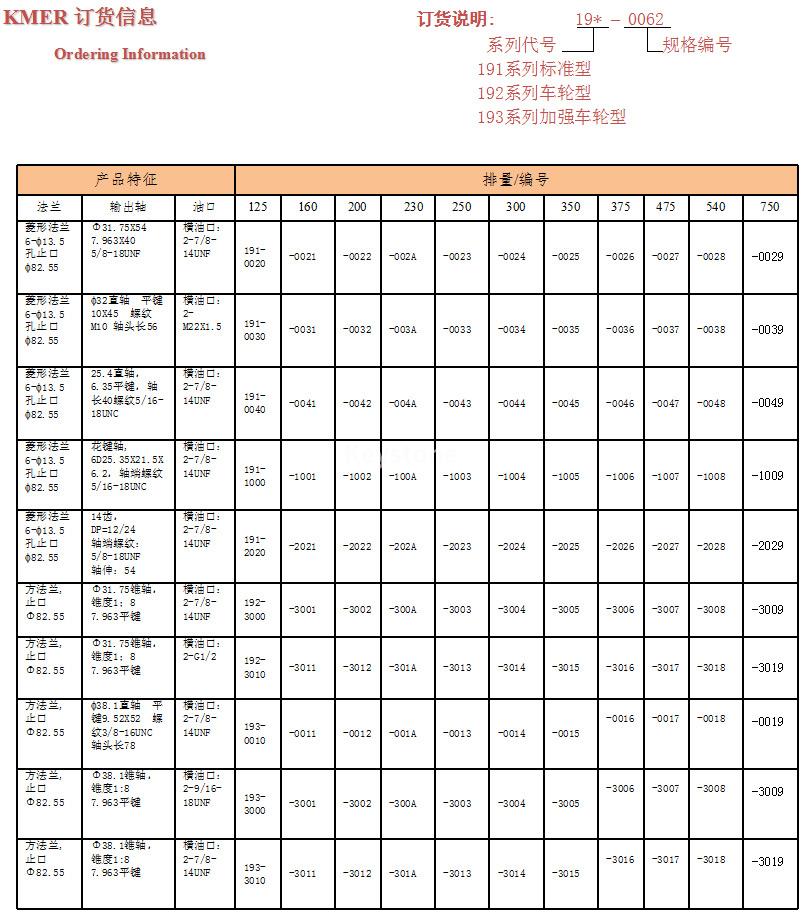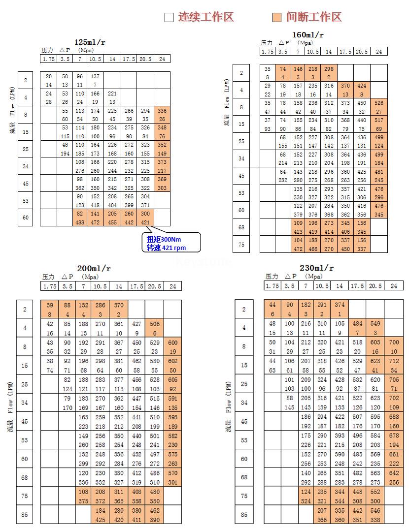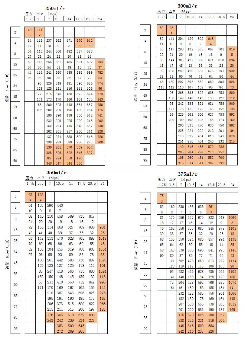 排量(ml/r) | 127 | 163 | 200 | 225 | 259 | 295 | 349 | 372 | 473 | 540 | 745 | |