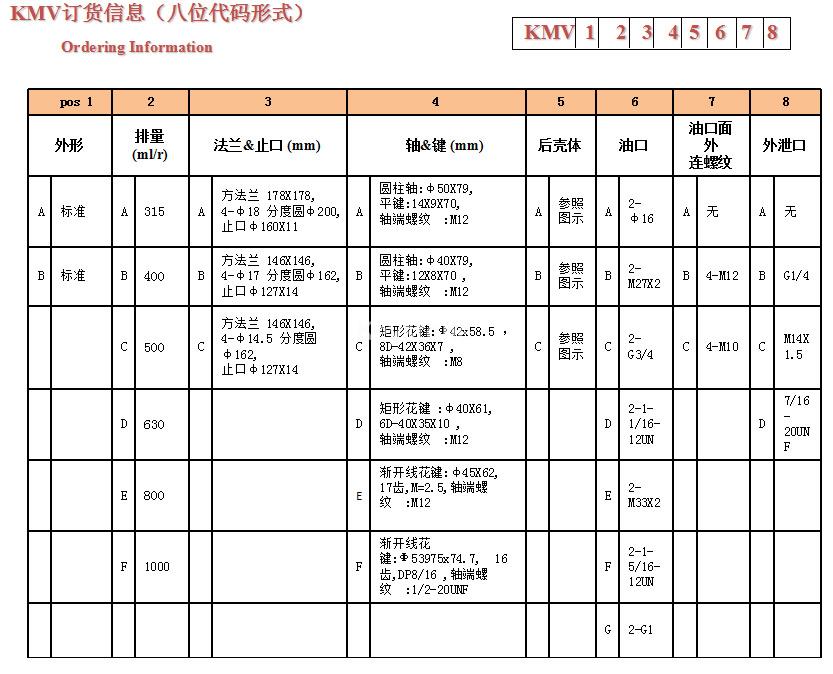 排量(ml/r) | 315 | 400 | 500 | 630 | 800 | 1000 | |