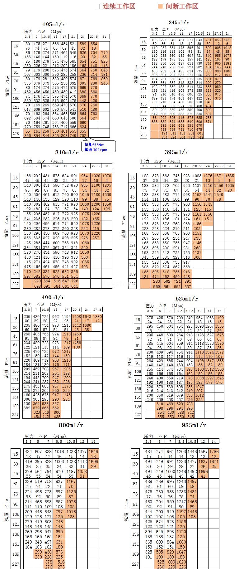 排量 (ml/r) | 195 | 245 | 310 | 395 | 490 | 625 | 800 | 985 | |